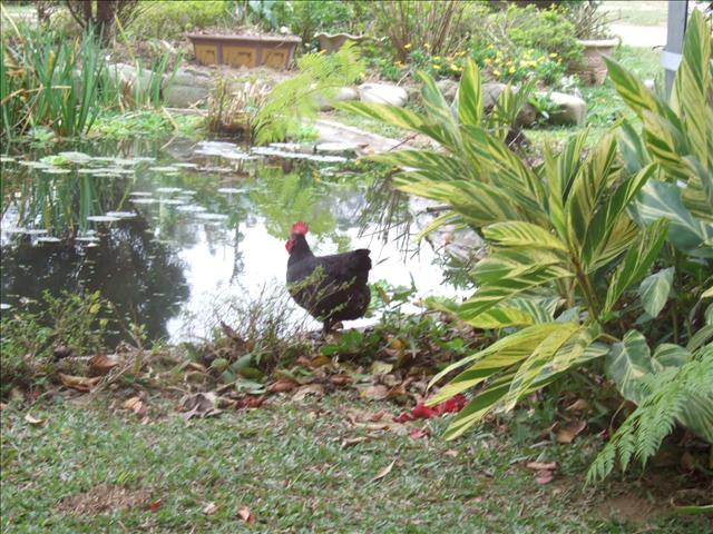 我跟君看著窗外那隻雞 一直在池塘邊喝水