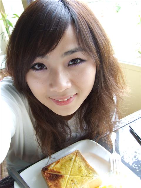 她說”我還想再吃ㄟ 想吃熱熱的土司~~要不要阿~~一人一半”